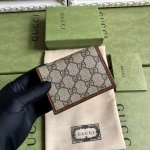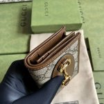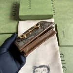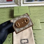 The premium edition, featuring green packaging, is available in the Spring/Summer collection. This new Gucci 1955 Horsebit card holder is crafted from Gg Supreme canvas and brown leather. This collection features the same double-ring and elongated design as the handbags. This detail, inspired by the brand's equestrian roots, is a Gucci classic and one of its most iconic symbols. Model: 621887 Brown, Dimensions: 11" wide x 8.5" high x 3" wide.