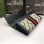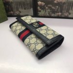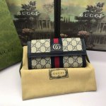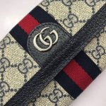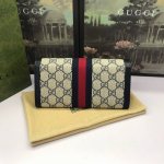 The top-of-the-line GG Supreme Ophidia collection! This flap wallet features Gg Supreme canvas, the iconic pattern, striped webbing, and premium hardware. Model: 523153. Color: PVC blue leather. Size: W19.5 x H11 x D3 cm.