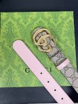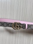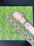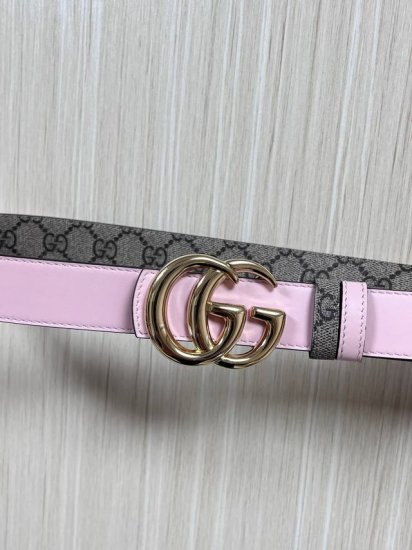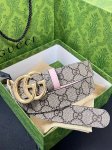 The Fall/Winter 2025 collection reinterprets the distinctive Gg Marmont series. This reversible narrow belt is crafted from Gg-print embossed leather and other leather materials, adorned with a double G buckle. Product Details: One side is pink Gg-print embossed leather, the other side is crafted from apricot leather. Light gold hardware. Double G buckle. Width: 2cm. Apricot lettering, pink base. Hook.