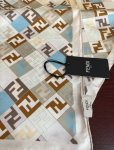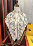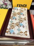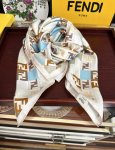 The new 2025 Fendi scarf features a custom "Walking Around Rome" pattern inspired by Rome's historic districts. The pattern design uses a micro Ff jacquard background to combine iconic brand elements with traditional elements [lips] and mixes orange, green and beige tones with a tone-on-tone pequin stripe color block border