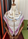 The new Gucci 2025 is so beautiful! A must-have. This leather Gg pattern print scarf features hand-curled edges. The brand's iconic design is constantly being reinterpreted, vividly showcasing its unique aesthetic. The Gg motif (lips) imbues this black silk scarf with classic brand flair. Size: 90x90. Material: Silk, 2 colors (
