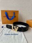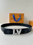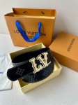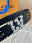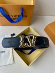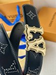This 4.0-width Lv leather belt is crafted from smooth leather and adorned with studs forming a monogram of the house. It features an aged Lv-sized loop and prominent seams along the edges. These details lend the model a sophisticated Western accent without altering its timeless and universal charm.