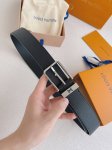 This Louis Vuitton Taurillon calfskin belt features an Louis Vuitton logo metal ring, suitable for casual and understated men; classic design elements. Width 35mm.