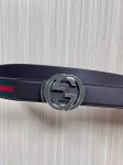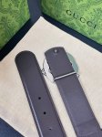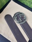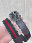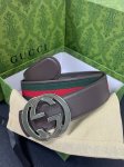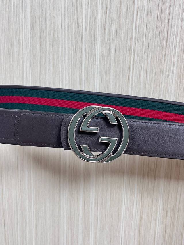 This reversible belt features red and green webbing and dark brown cowhide leather, paired with a detachable interlocking double G buckle, adding a new piece to the Fall/Winter 2025 collection. 4.0mm wide bound leather hook and loop fastener.