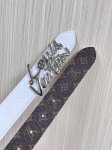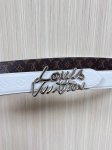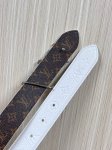 This season's newest belt is crafted from luxurious calfskin and Monogram canvas, allowing for effortless switching between two styles. The Louis Vuitton handwritten logo is transformed into a wide metal buckle, drawing attention to the center and adding an elegant touch to both casual and formal looks. The 3.0 wide wire buckle is made of embossed pebbled calfskin, with a pointed and square design.