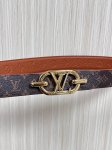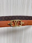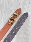 This season's newest design features a belt crafted from luxurious calfskin and Monogram canvas, allowing for effortless switching between two styles. The Louis Vuitton handwritten logo is transformed into a wide metal buckle, drawing attention to the center and adding an elegant touch to both casual and formal looks. Made from 3.0mm wide tan pebbled calfskin.