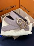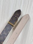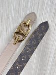 This season's newest design features a belt crafted from luxurious calfskin and Monogram canvas, allowing for effortless switching between two styles. The Louis Vuitton handwritten logo is transformed into a wide metal buckle, drawing attention to the center and adding an elegant touch to both casual and formal looks. The 3.0 wide belt features a plush grey pebbled embossed pattern.