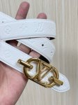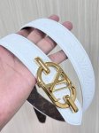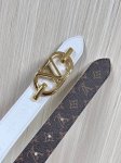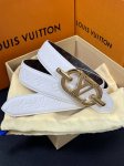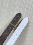 This season's newest design features a belt crafted from luxurious calfskin and Monogram canvas, allowing for effortless switching between two styles. The Louis Vuitton handwritten logo is transformed into a wide metal buckle, drawing attention to the center and adding an elegant touch to both casual and formal looks. It features a 3.0-inch wide white pebbled embossed design.