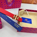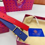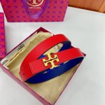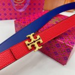 Tory Burch reversible belt, featuring the iconic double T logo with a sliding, adjustable brass buckle. Top: Cowhide leather. Bottom: Cowhide leather. Suitable for wearing around the waist or hips. 2.5cm width. Every design detail combines practicality and beauty.