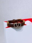 Valentino bracelet made of double-sided first-layer cowhide leather, with brass metal rhinestones embellished with the V logo metal, so cool! One size fits all.