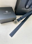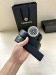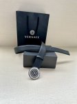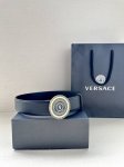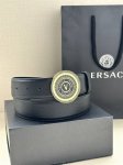 3.8cm wide Versace Jeans Couture cowhide V-Emblem buckle belt, featuring La Greca accents for a distinctive design. This studded belt is adorned with La Greca hardware for a Versace look.
