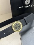 3.8cm wide Versace Jeans Couture cowhide V-Emblem buckle belt, featuring La Grec