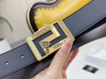 Fully packaged, new Versace model. 3.8cm wide, imported top-grain calfskin leather, double-sided design, one side black, the other coffee, for versatility and value. Soft leather. A must-have for stylish men. Buckle: Authentic, pure steel buckle that won't fade.