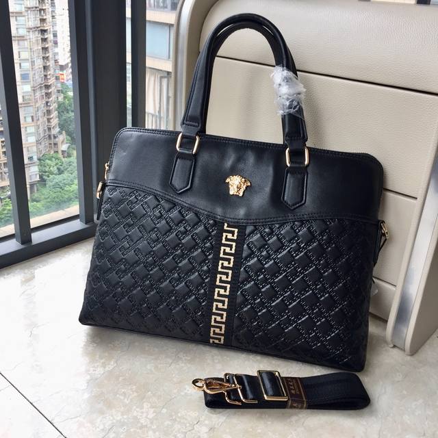 New Versace 1178# Men's high-quality briefcase handbag crossbody bag hot-selling model, please look for the leather and details, high-end atmosphere and grade original quality original calfskin and high-end imported hardware, leather, soft, feels super good high-end, atmosphere, super stylish exclusive: first release original color: black material: original leather size 38-29-5