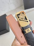 Product Name: Versace Original Belt/Leather Bag Model: Hook buckle, classic man-head pure steel buckle, top-grain cowhide, real product photos. Material: 100% top-grain cowhide, guaranteed genuine leather. 24K pure steel buckle, reversible, same quality as boutique items. Classic double-sided top-grain cowhide printed tan plain weave base, gold buckle, classic man-head pure steel buckle, reversible. Ideal for gifting or personal use. Packaging: Please look for the boutique packaging and NFC tag as shown in the picture. Includes a hole punch, original electronic invoice, width 3.8cm.