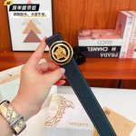 This is a new Versace original. Made with double-sided, imported Italian cowhide leather. This is a classic black colorway, perfect for any occasion. This buckle features a premium design with attention to detail. Width: 3.8cm.