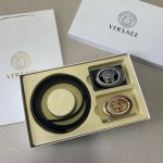 This Versace belt and two bags come in a gift box. This practical briefcase is a perfect choice. Highly recommended for everyday wear. Double-buckle belt: 100mm leather with a 3.8cm faux brass buckle. Dimensions: Versace briefcase: Length 19cm, Width 4cm, Height 21cm. Versace handbag: Length 25cm, Width 2cm, Height 16cm.