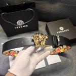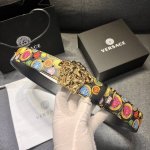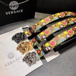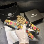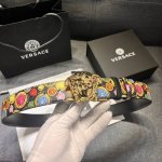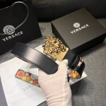 Versace, width 4.0cm, original boutique, 3D Medusa belt buckle - Barocco print - material, top layer cowhide, this smooth Saffiano leather belt is decorated with Barocco print. Comes with a belt buckle with 3D Medusa.