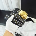 Width 4.0Cm Versace Palazzo belt is made of cowhide leather and decorated with L
