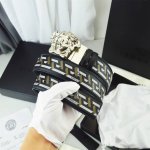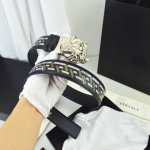 Versace, width 4.0Cm, original boutique, 3D Medusa belt buckle - Barocco print - material, top layer cowhide, this smooth Saffiano leather belt is decorated with Barocco print. Comes with a belt buckle with 3D Medusa.