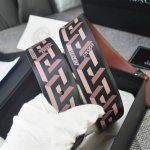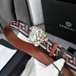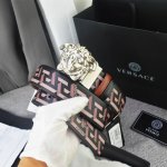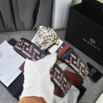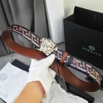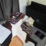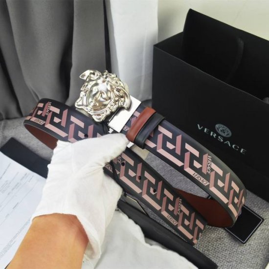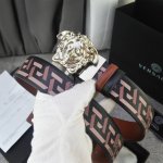 Versace, width 4.0Cm, original boutique, 3D Medusa belt buckle - Barocco print - material, first layer cowhide, this smooth Saffiano leather belt is decorated with Barocco print. Comes with a belt buckle with 3D Medusa.