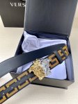 Width 3.8cm This Versace satin ribbon belt has a very casual style, decorated with the iconic Greek key pattern, and can be paired with casual items or high-waisted formal wear. Closed style. Greek key pattern. Material: 100% Polyester. Trim: 100% Leather.