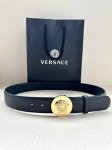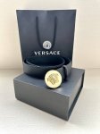 Width 4.0Cm. This Versaec fashion belt is made of supple calfskin leather and features a three-dimensional Medusa design. The original steel buckle hardware is vacuum plated.