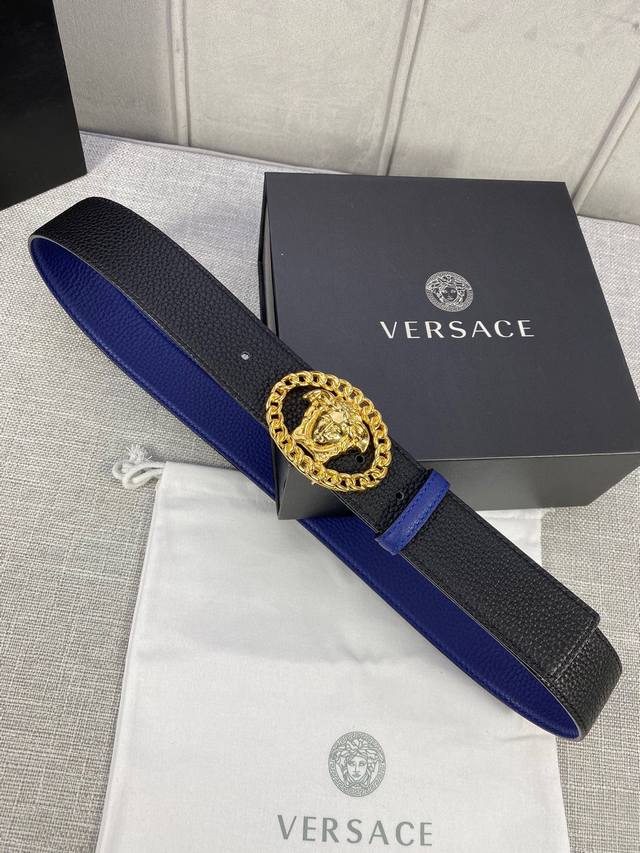 Width: 4.0cm. This Versace reversible belt features the iconic Versace Medusa he