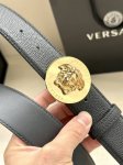 Width 4.0cm Versaec This fashionable belt is made of soft calf leather and decorated with a three-dimensional Medusa. The original steel buckle hardware is vacuum-plated.