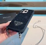 With triangle logo chain, synchronized with Prada official website, Prada mobile phone case, full shell chain crossbody mobile phone case, pure hand-made diamond Bingbing