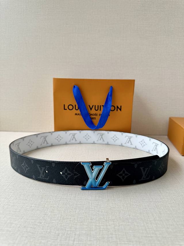 4.0 Wide Lv Dimension Sunset double-sided belt is made of Monogram coated canvas, which reproduces the beautiful mood of morning light and sunset with warm tones, and captures the beauty of the passage of time with the eye-catching gradient effect buckle