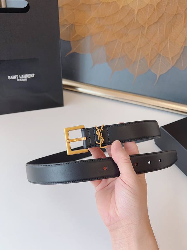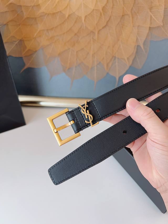 ST Saint Laurent High-End Genuine Leather Women's Fashion Belt Made of top-grade imported first-layer cowhide with a smooth weave, soft and comfortable to wear. Features an adjustable square pin buckle with antique bronze hardware, vacuum electroplating for wear resistance and colorfastness. The Y*L Monogram embossing exudes understated luxury with impeccable details. The 3.0 cm narrow strap is versatile and can be paired with any dress. Comes with full packaging and shipping. Ideal for personal use or as a presentable gift. Simple yet sophisticated, this belt elevates any outfit! Real photos and details available upon request. Limited stock available, act fast! #SaintLaurent #Ys*Belt #Luxury #FashionItem